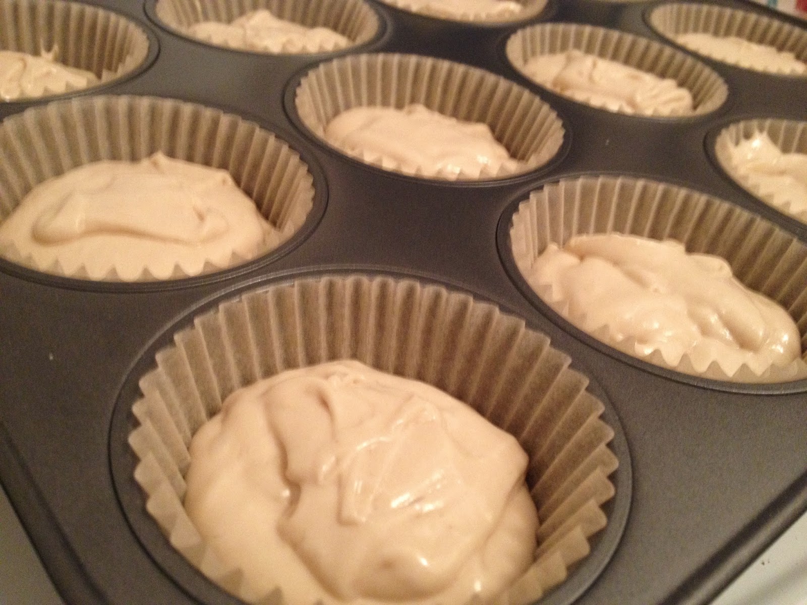 Line a cupcake tray with liners and fill each liner with ¼ cup of batter Bake the cupcakes according to the time on the box (350 degrees for about 20 to 23 minutes).