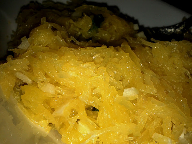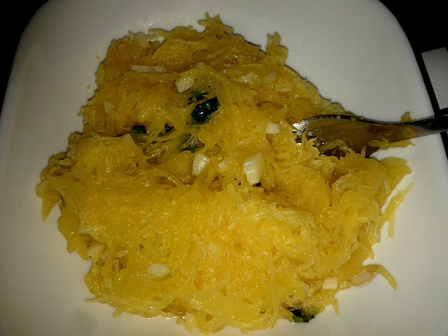 Today was my first day trying out spaghetti squash. I started with an easy recipe I found on Steamy Kitchen. The recipe was very easy and it turned out really well. I had a bowl of it and am super full surprisingly. I think this is going to be my new favourite alternative to pasta.