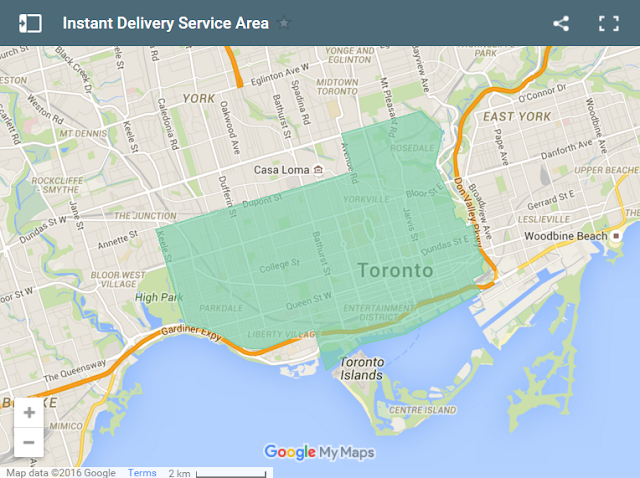 My experience so far has been great with UberEats, but I only use it in dire situations. It can get very pricey especially with the $4.99 delivery charge and if you’re placing just one order for yourself. It would be ideal to use UberEats with other people so that everyone can split the delivery charge and have an awesome meal together. I find myself using the instant delivery lunch option more often since the delivery is included in the food price and most items always range from about 8 to 13 dollars. It is important to note that UberEats will deliver to a wide range of areas in the GTA but the ‘Uber Instant Lunch’ service is only available in the highlighted areas: